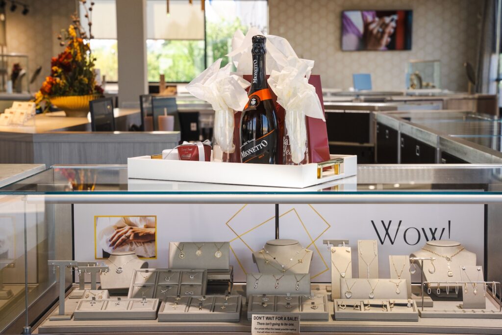 For the former, if they’re leaving in under 15 minutes of entering the store, it could be they aren’t finding the merchandise they want, OR it could be your store’s ambience. If your guests are finding your store to have a comfortable and inspiring experience, they will linger longer. This is not just accomplished through good customer service, but with the right type and volume of music, the right type and amount of aroma, the right offerings of beverages, the right type of seating pieces, and the amount of overall satisfaction with the visual décor. All of these elements contribute to a how a customer feels in the space and how long they will stay to talk “jewelry” and consider additional purchases.